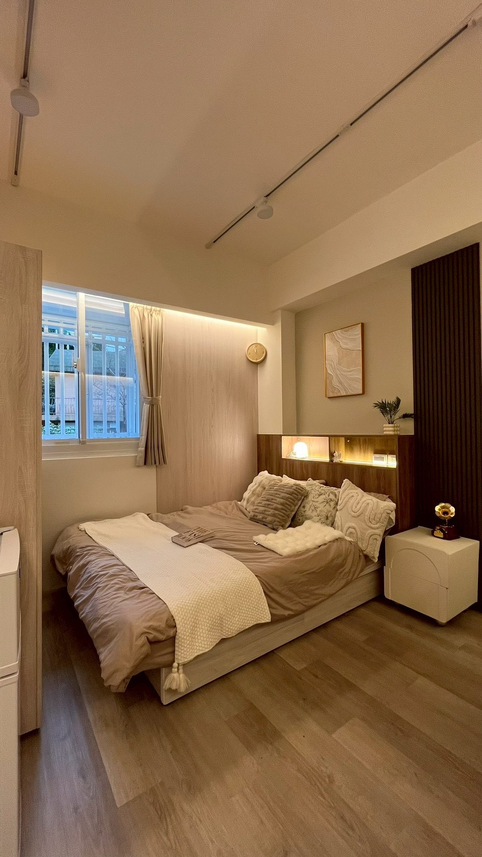 預約諮詢此空間以輕盈的奶油白為基調,局部點綴深淺交織的木質紋理,在視覺上構築出極具包覆感的溫潤層次。溫暖的間接燈帶沿著天際線蔓延,消解了空間的邊際感,讓居家氛圍在柔和光影中顯得洗鍊而安定。整體設計捨棄繁複,以中性色調營造低壓、放鬆的純淨感受,完美實踐現代都會的簡約生活美學。