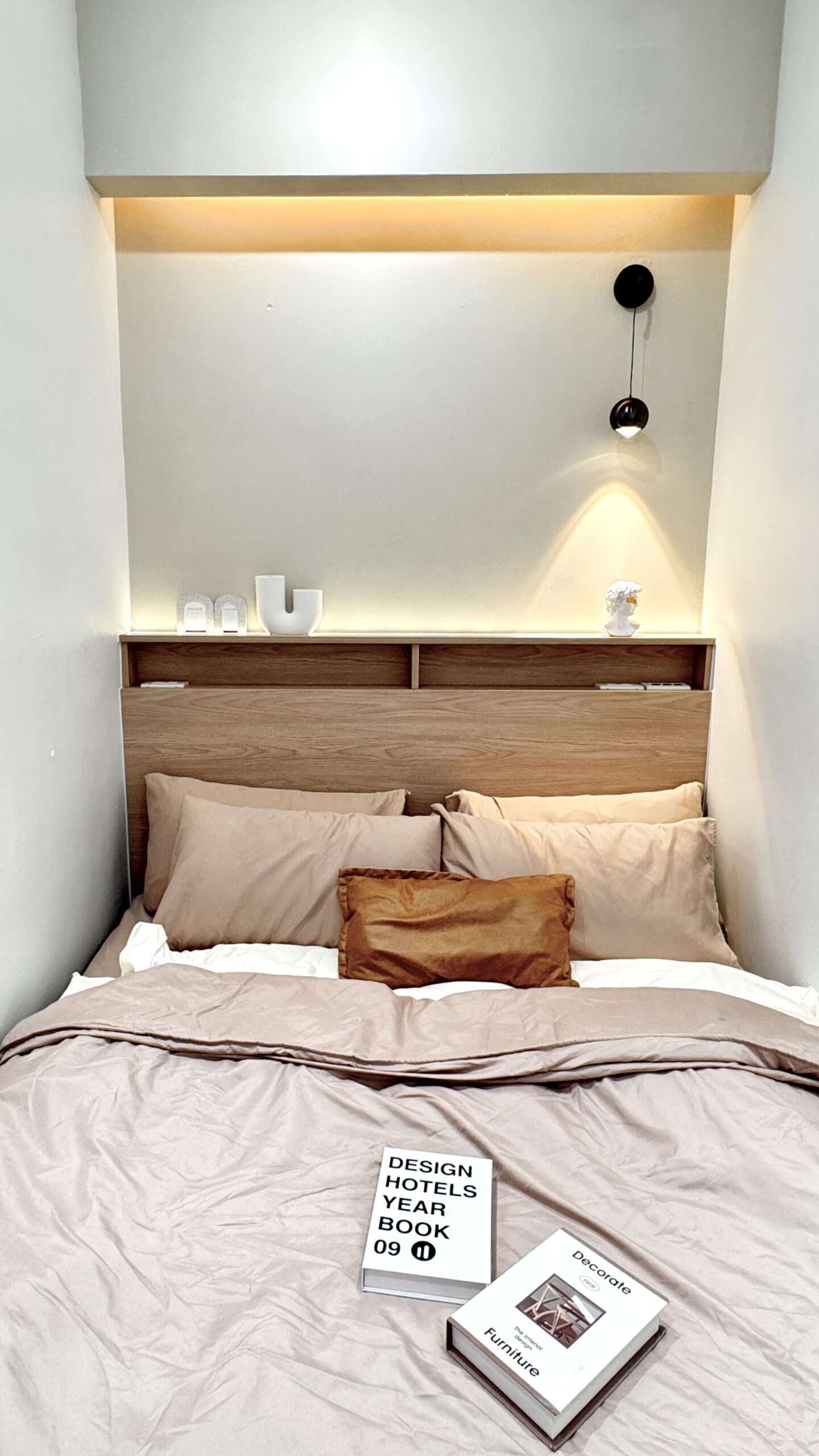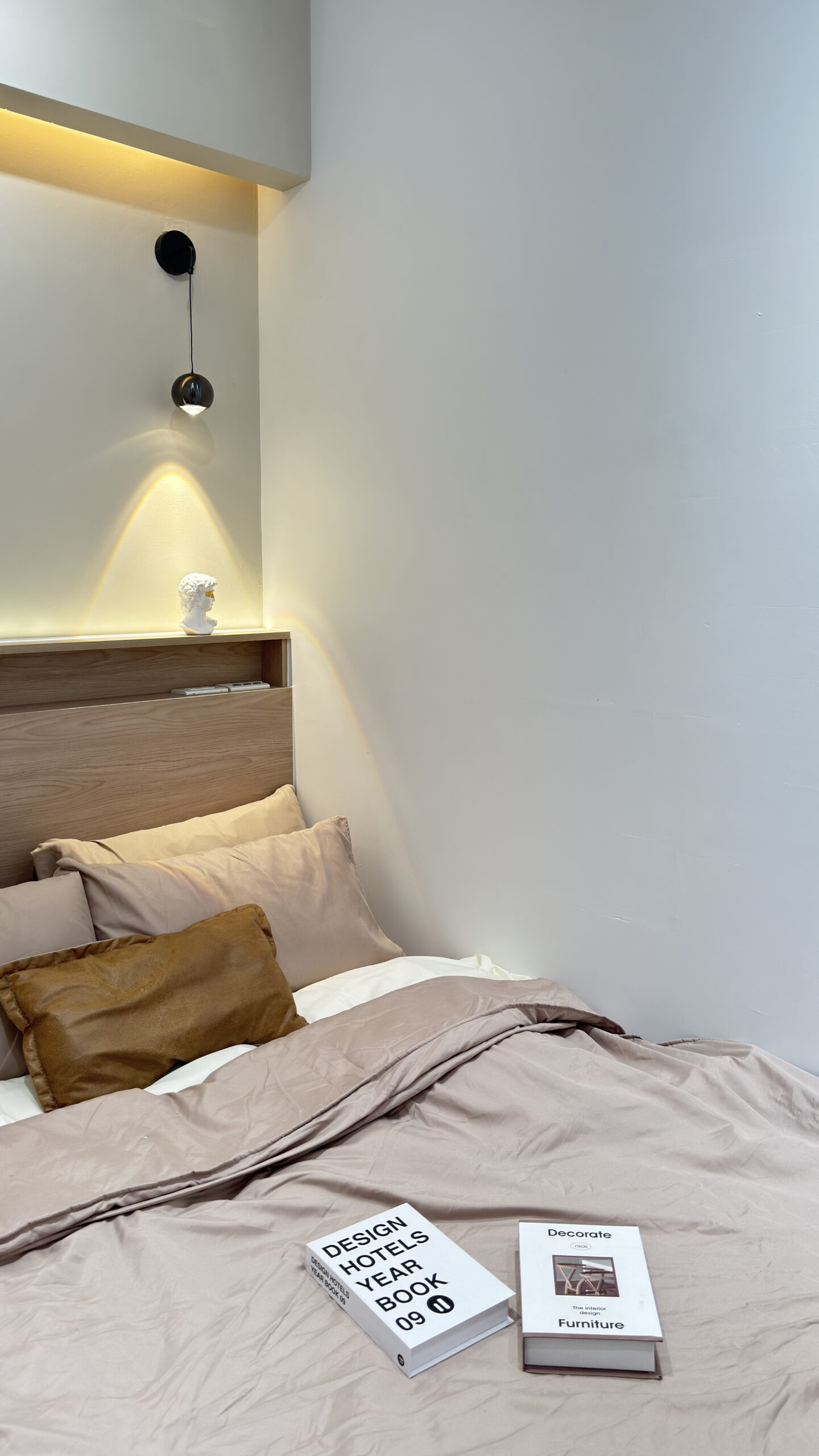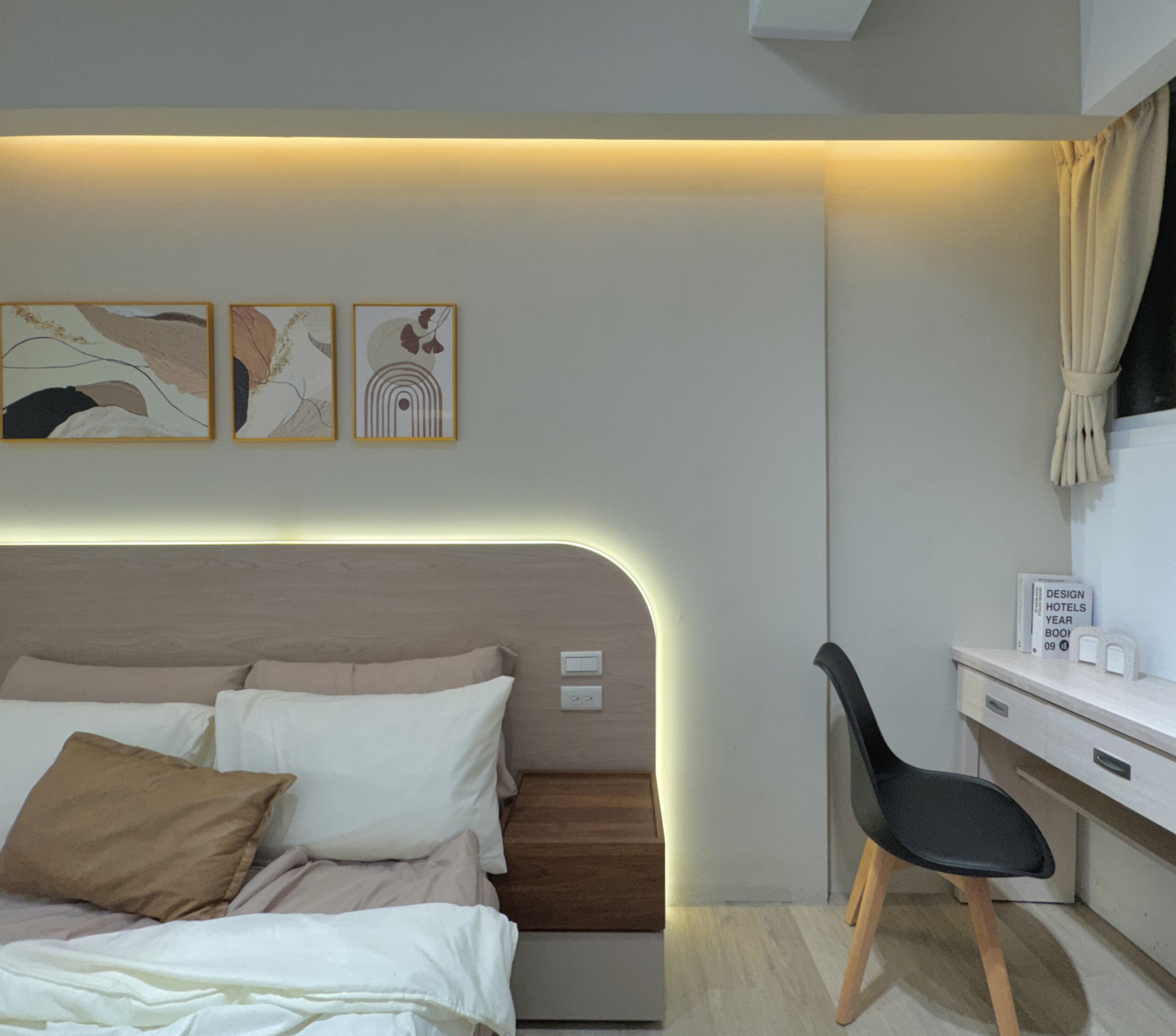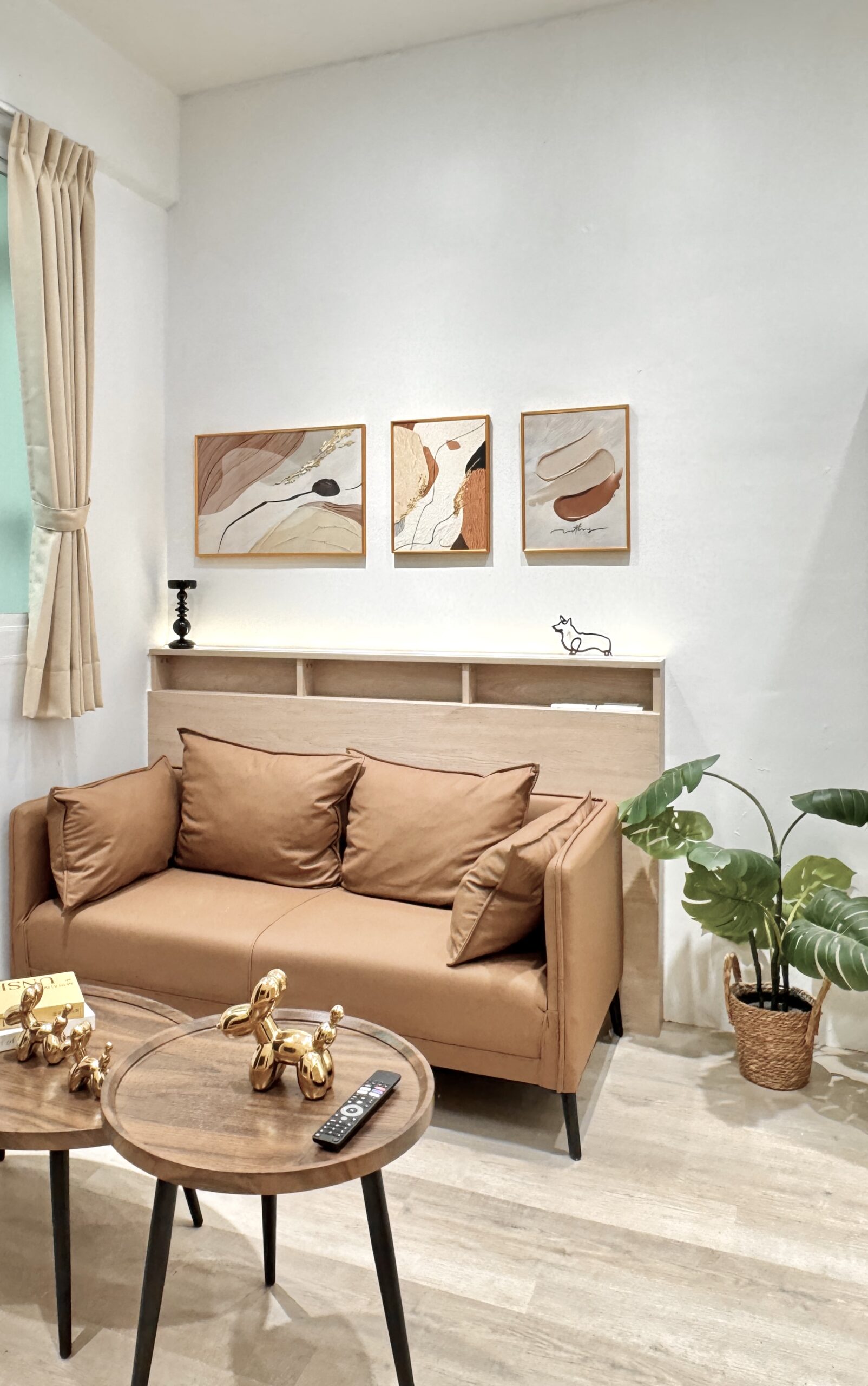 預約諮詢以柔和奶茶色為主調,搭配溫潤燈光,營造出恬靜且舒適的氛圍。座落於南雅西路的巷弄之中,雖空間不大,卻以精巧的比例與細膩的質感設計,創造出溫馨而不侷促的體驗。整體色調與光線交織出柔和層次,讓人一踏入便感受到輕盈而愜意的生活氣息。