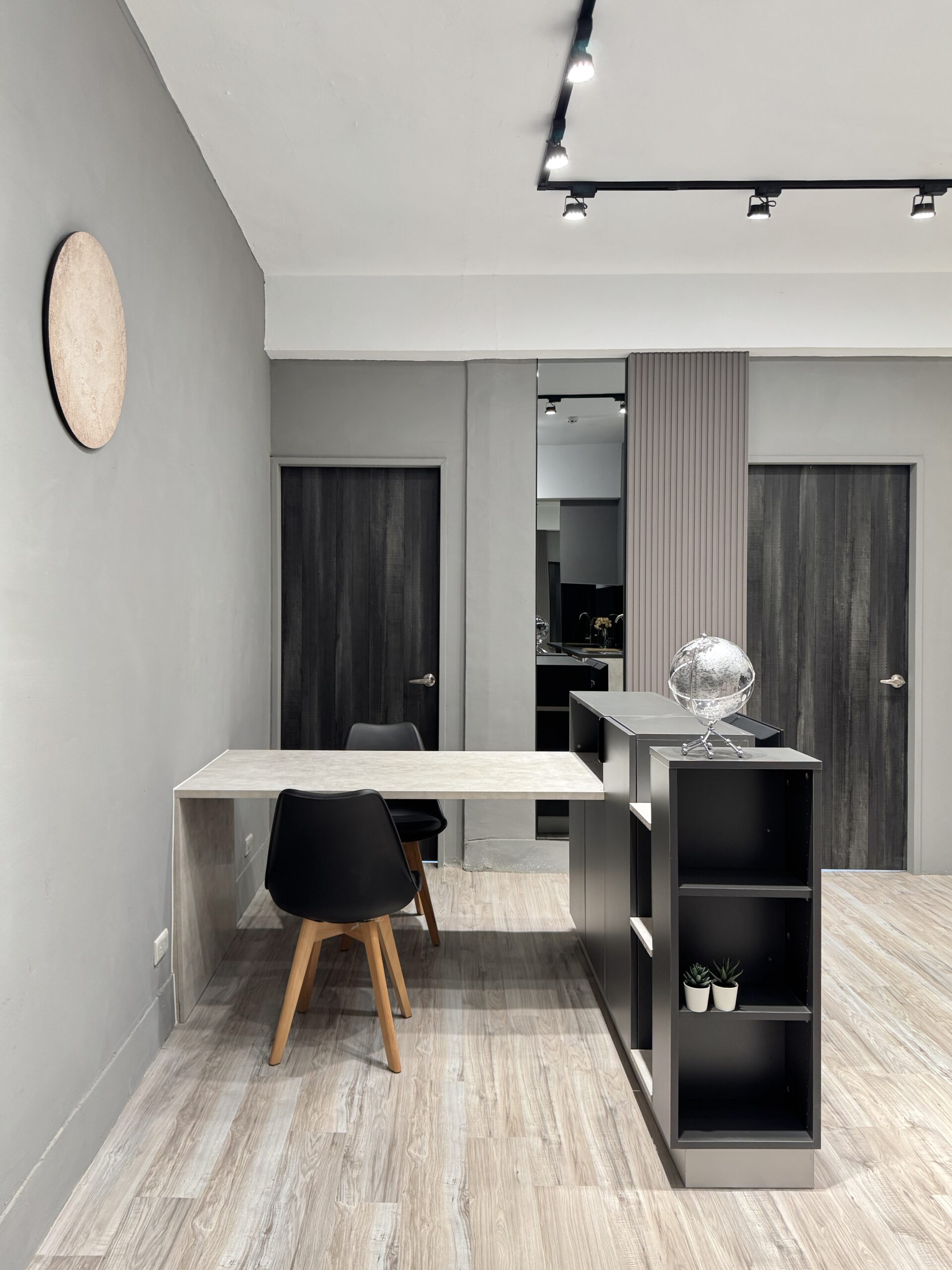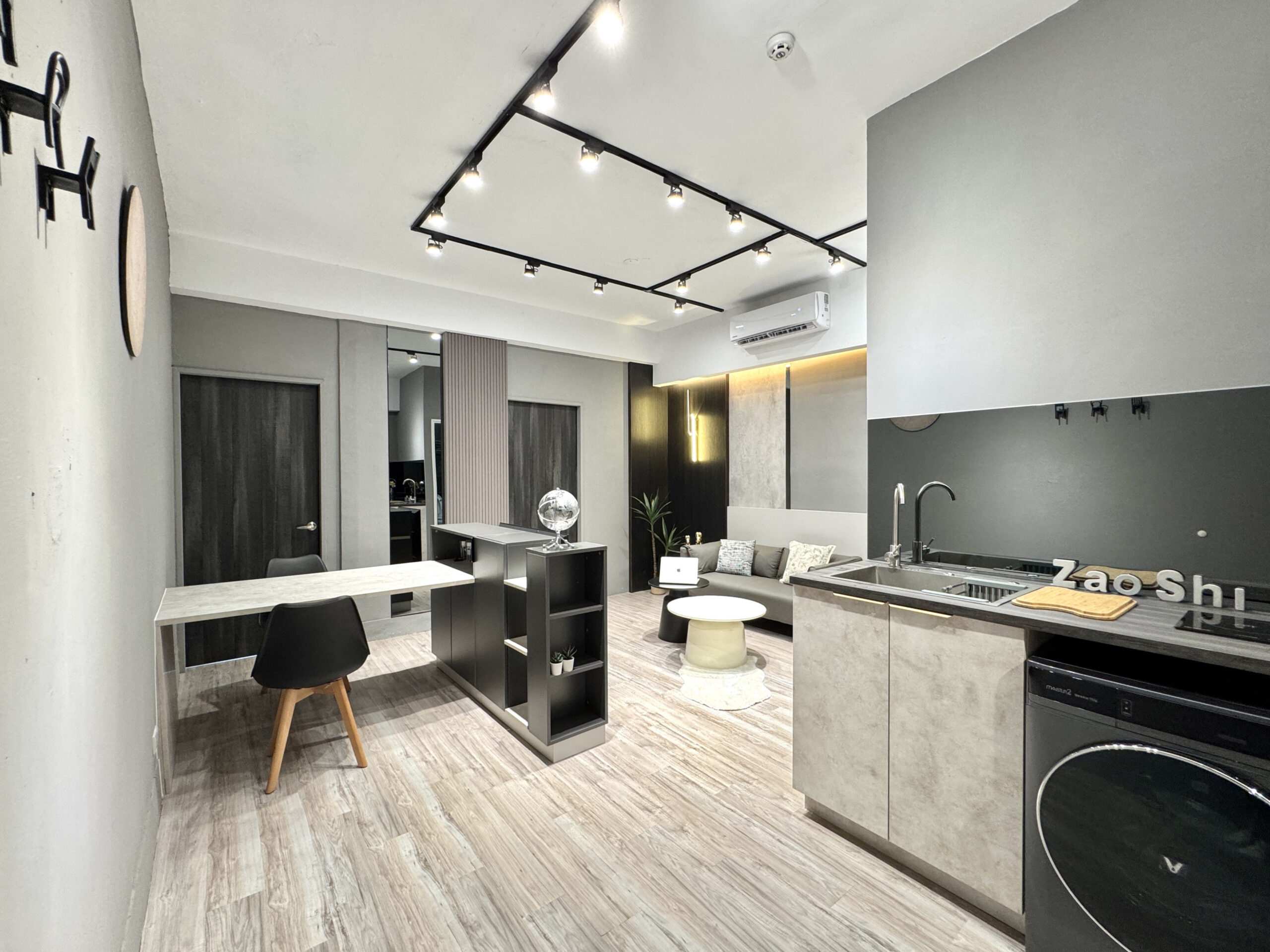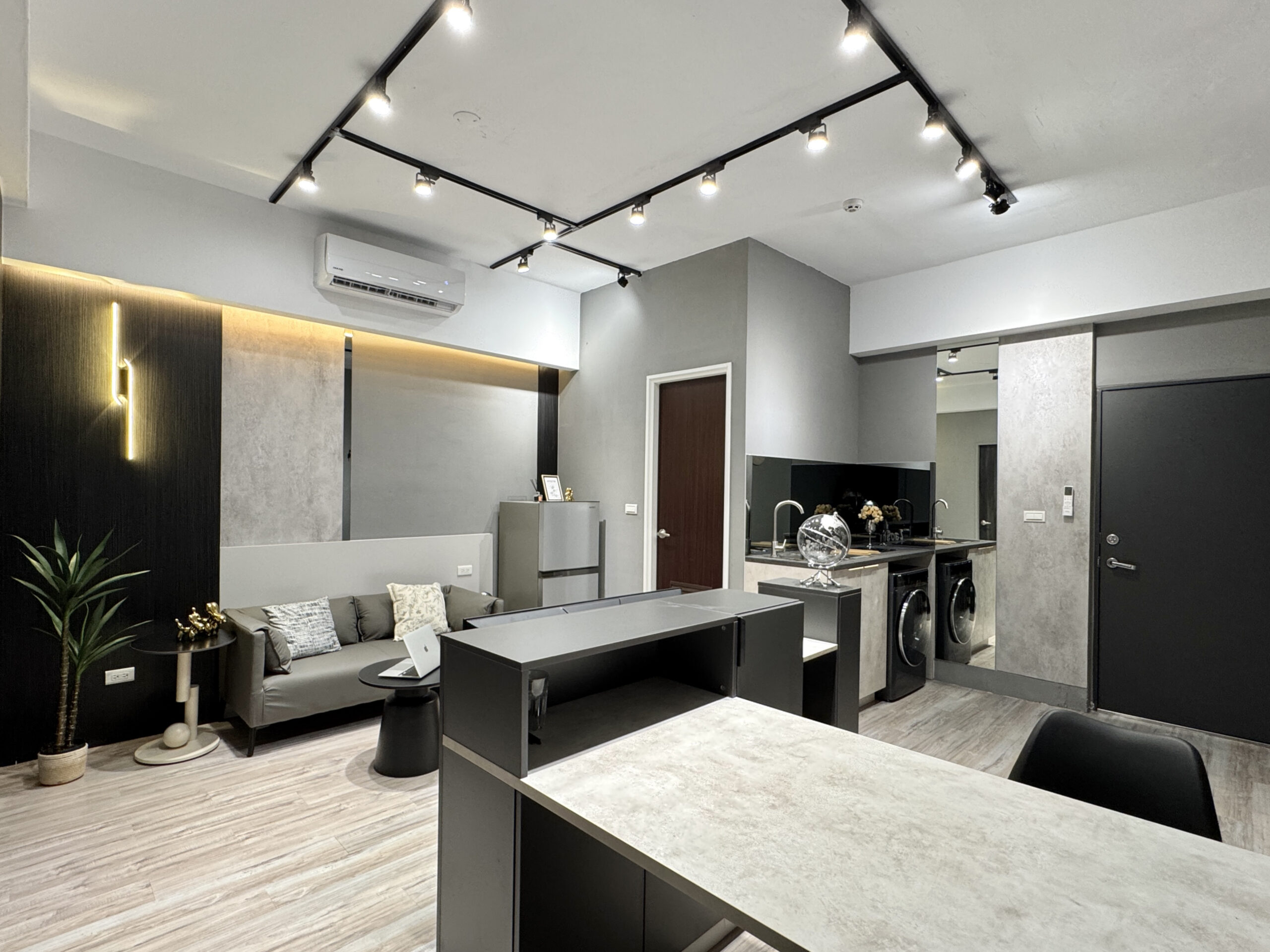 在小坪數中創造開放卻不侷促的生活場域。整體以灰色調為基底,