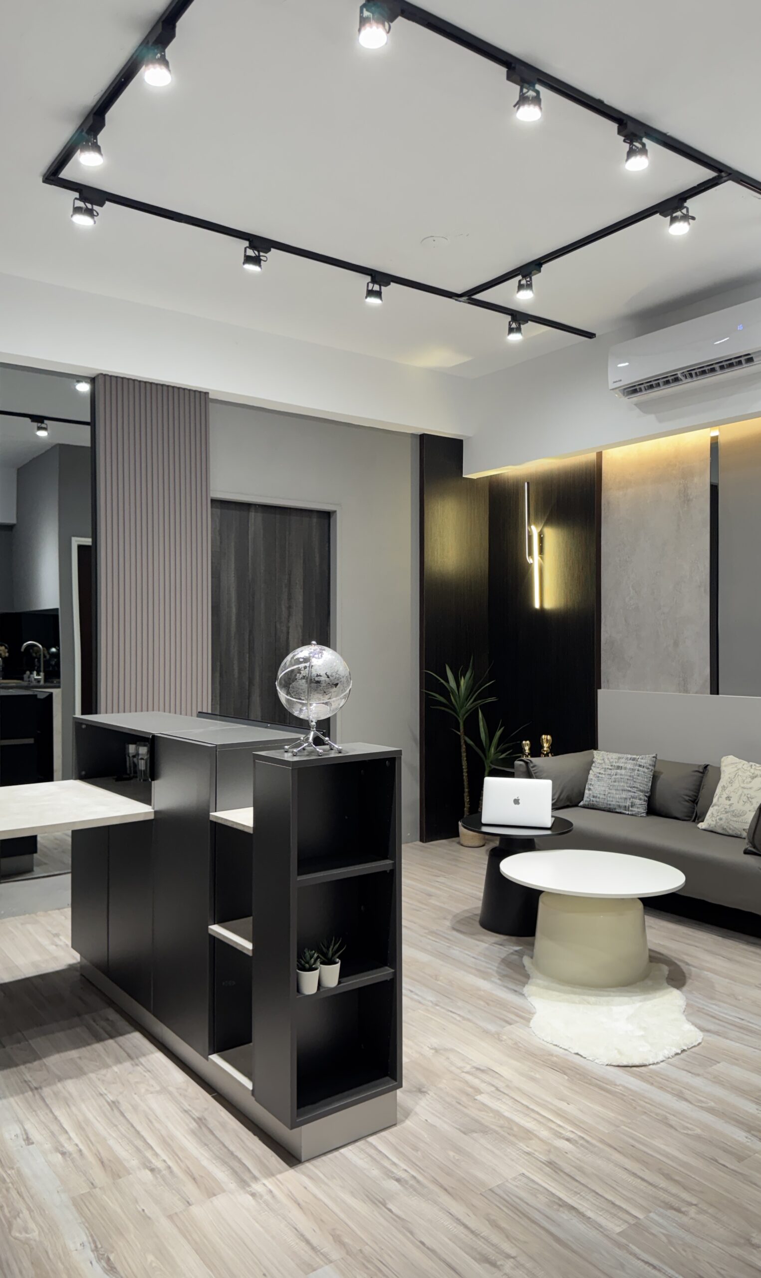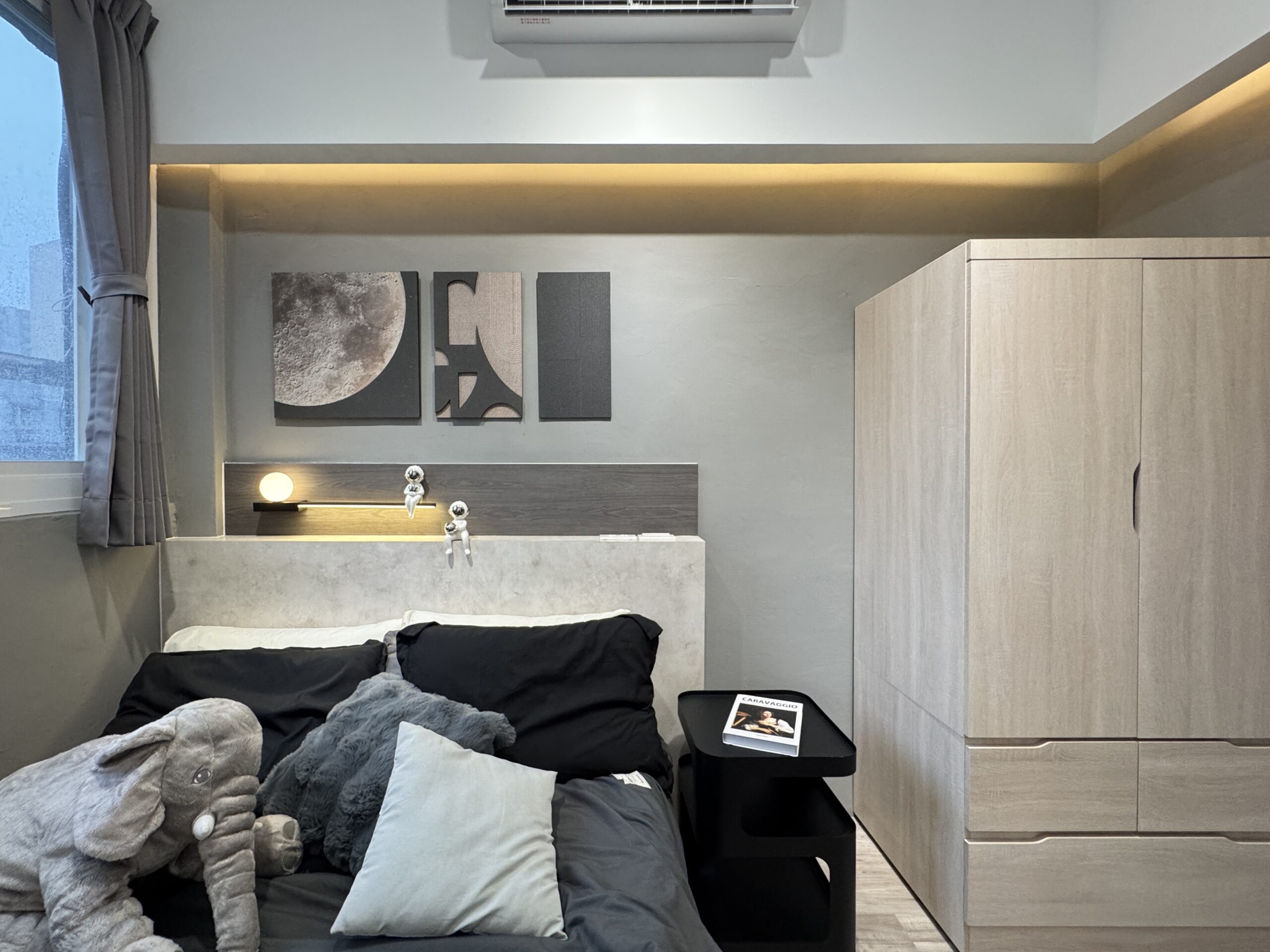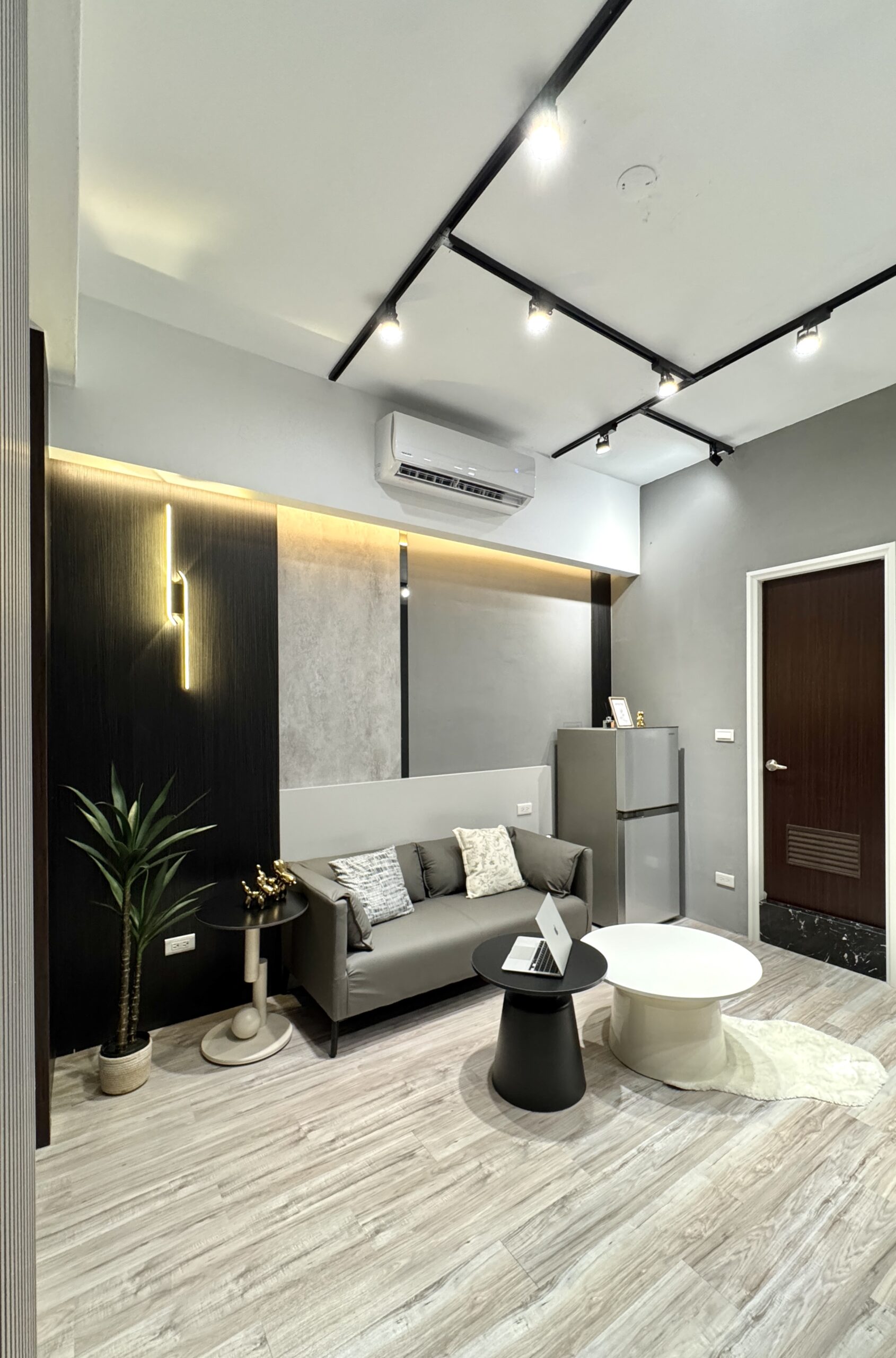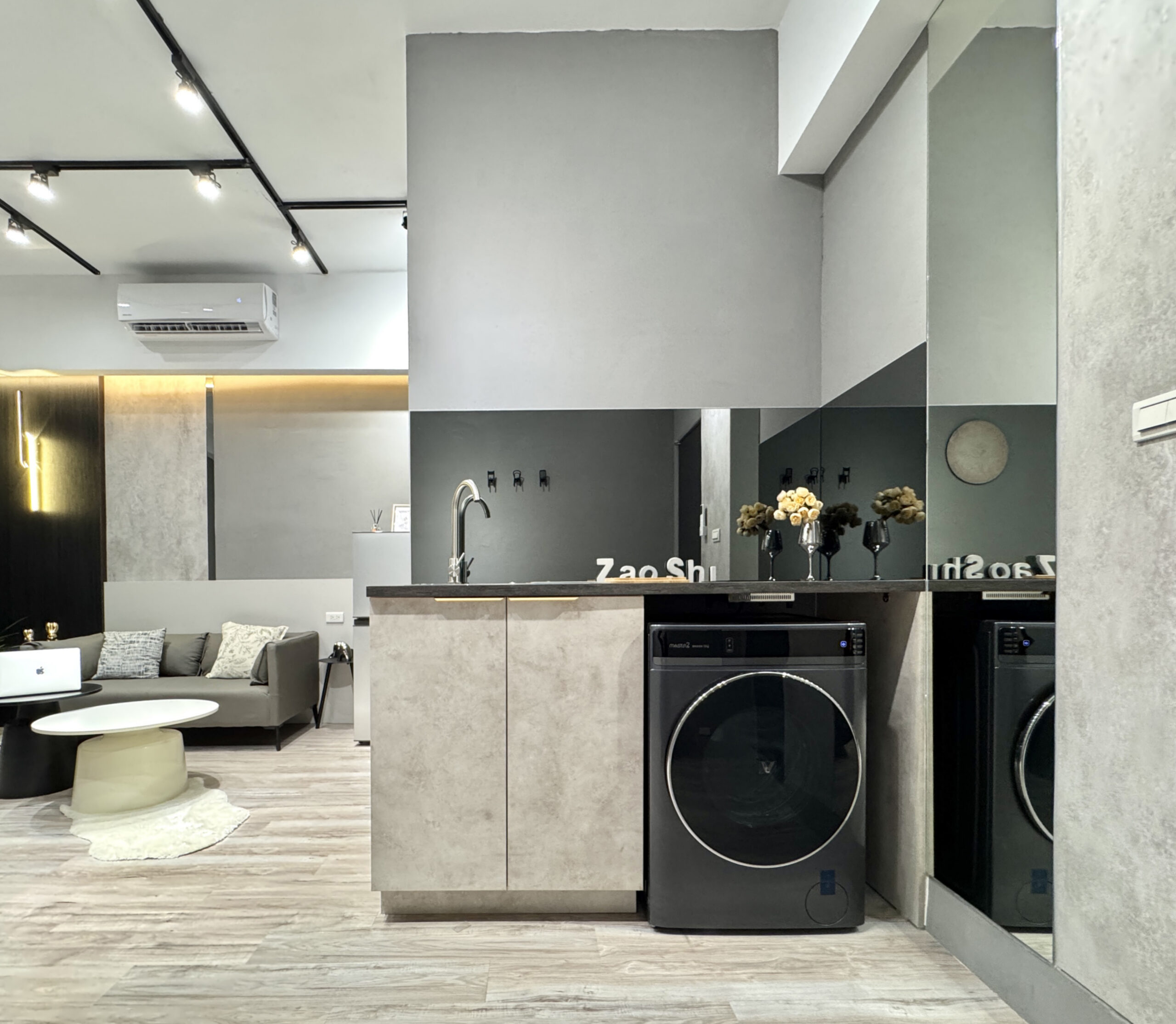 在小坪數中創造開放卻不侷促的生活場域。整體以灰色調為基底,