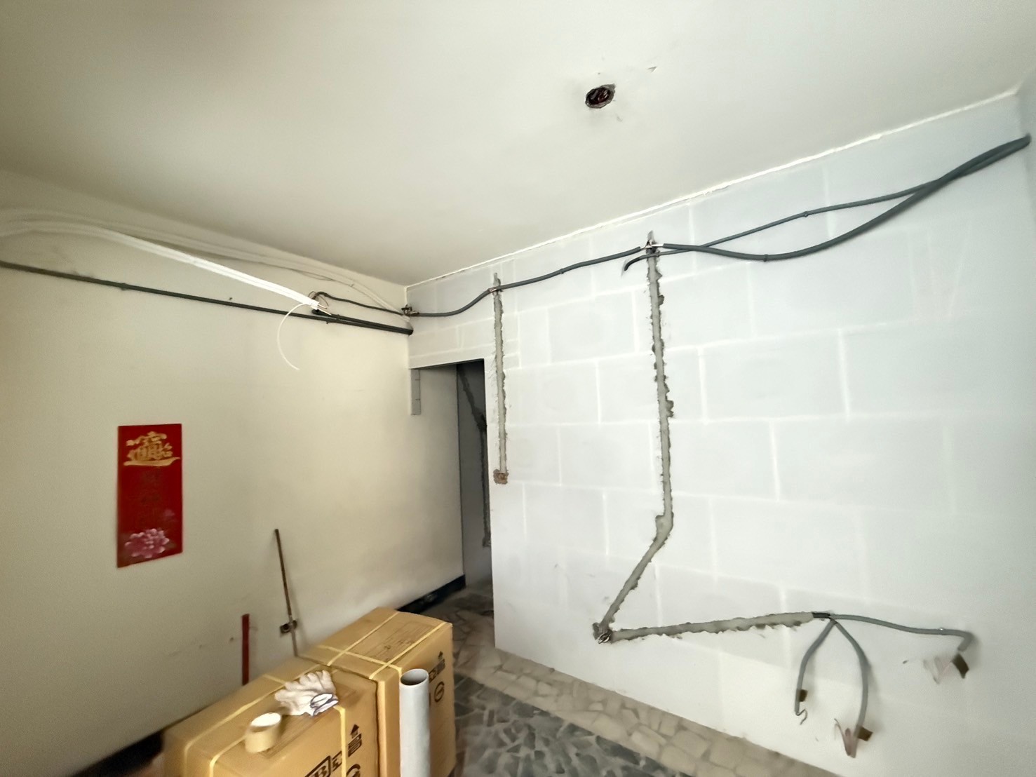 設計師第一次進到屋內時,空氣裡瀰漫著濃厚的霉味與腐敗氣息。經過詳細檢查後才發現,除了外牆滲水外,樓板間的進水管也因地震產生裂縫,導致水源持續滲入。